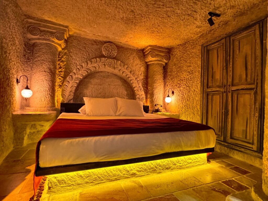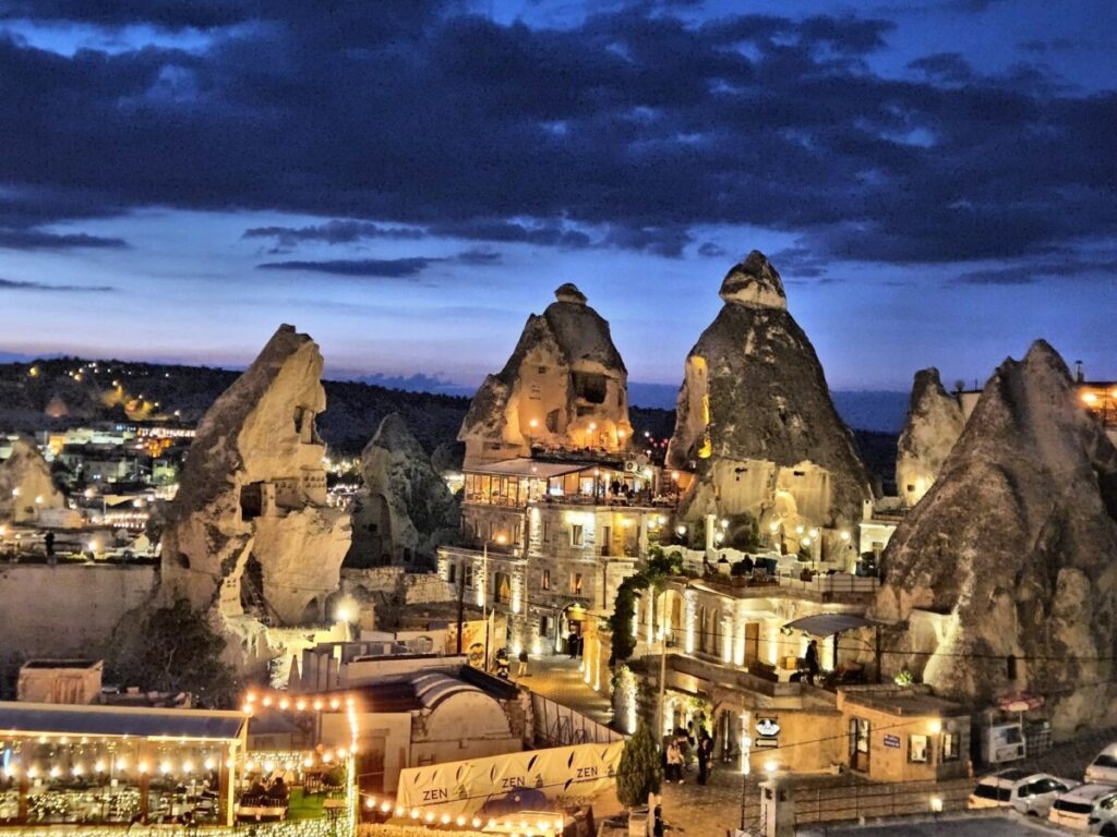 Nakon ugodnog putovanja od nekih sat vremena i uživanja u razgledavanju krajolika, stižemo u Urgup i ja postajem svjesna da smo zaista stigli na područje Kapadokije. Planinska vizura i kamene stijene sa ukopanim spiljama i ulazima u nekadašnje nastambe, šire se pred mojim očima. Zaista je čudesno. Upravo je vrijeme ručka i mi okrećemo na suprotnu stranu ulice, u restoran Tandir house. Ono što se ne vidi prilikom ulaska je da je dio restorana također ukopan u stijenu odnosno dio se restorana nalazi u kamenoj pećini. Osjećaj kada prvi puta uđeš u podzemne kamene hodnike je jednostavno neopisiv. A tek nakon istraživanja kamenih prostorija restorana, kreće ručak i savršena hrana. Sve je toliko ukusno i obilno da čovjek nije u mogućnosti pojesti sve obilje prostrto po stolu. Brojni ukusni umaci i lokalni specijaliteti poput manti, humusa sa prženim mesom i testi kebabi za glavno jelo. I kao da nisam već dovoljno sretna od prvog dojma Kapadokije, stižemo do našeg hotela. Radi se o jednom od Cave hotela, koji nisu rijetki na ovom području. Ali ono što nisam očekivala je nevjerojatna ljepota cijelog hotelskog kompleksa, oaze u kojoj se ima što za raditi bez napuštanja kompleksa. I kako bi doživljaj bio potpun, naša se soba nalazila unutar jedne od pećina. Ukopana u kamenu stijenu, sa kamenim krevetom, čudo je kojem se nisam prestajala diviti. Hvala ti živote!